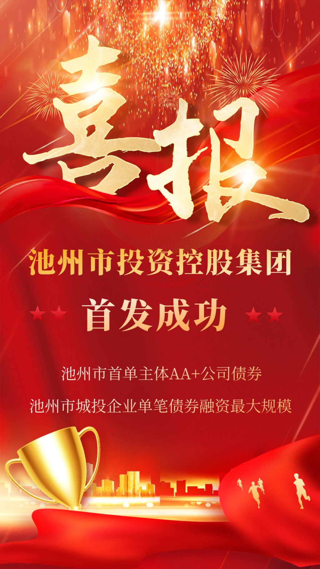 日前,池州市投資控股集團有限公司2023年面向?qū)I(yè)投資者非公開發(fā)行公司債券(第一期)成功發(fā)行這是池州市首單主體AA+公司債券也是池州市城投企業(yè)單筆債券融資最大規(guī)模!