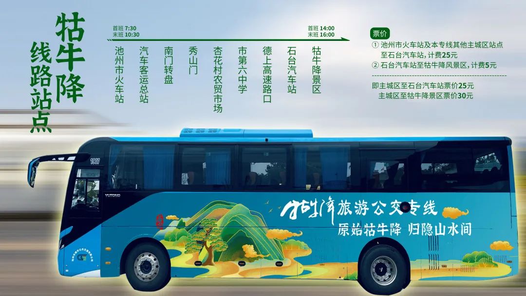 11月1日,池州主城區(qū)環(huán)城旅游公交線路和池州高鐵站至牯牛降景區(qū)旅游直通專線正式開通。環(huán)城公交線路全長約35公里,配備4臺新能源純電動公交車,采取環(huán)線運(yùn)營模式,途徑杏花村、平天湖、齊山、百牙塔、天堂湖公園等特色景區(qū)景點(diǎn)。火車站至牯牛降景區(qū)旅游直通專線全長100公里,沿線設(shè)置9個??奎c(diǎn),采用循環(huán)發(fā)車模式,旅客可直接“打卡”牯牛降景區(qū),暢游石臺享受美好“硒”生活。