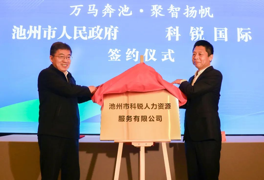 4月2日上午,池州市政府與科銳國(guó)際合作交流座談會(huì)暨合作項(xiàng)目簽約儀式舉行。市委書記朱浩東、科銳國(guó)際董事長(zhǎng)高勇出席并講話,共同為池州市科銳人力資源服務(wù)有限公司揭牌。市領(lǐng)導(dǎo)史孺牛、廖強(qiáng)、李軍等參加。